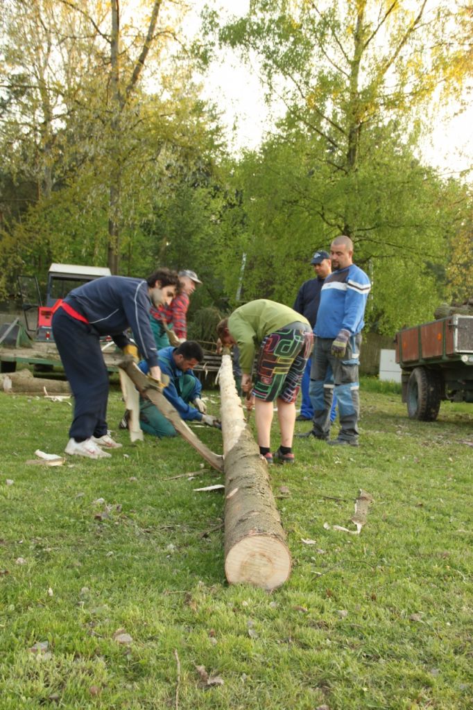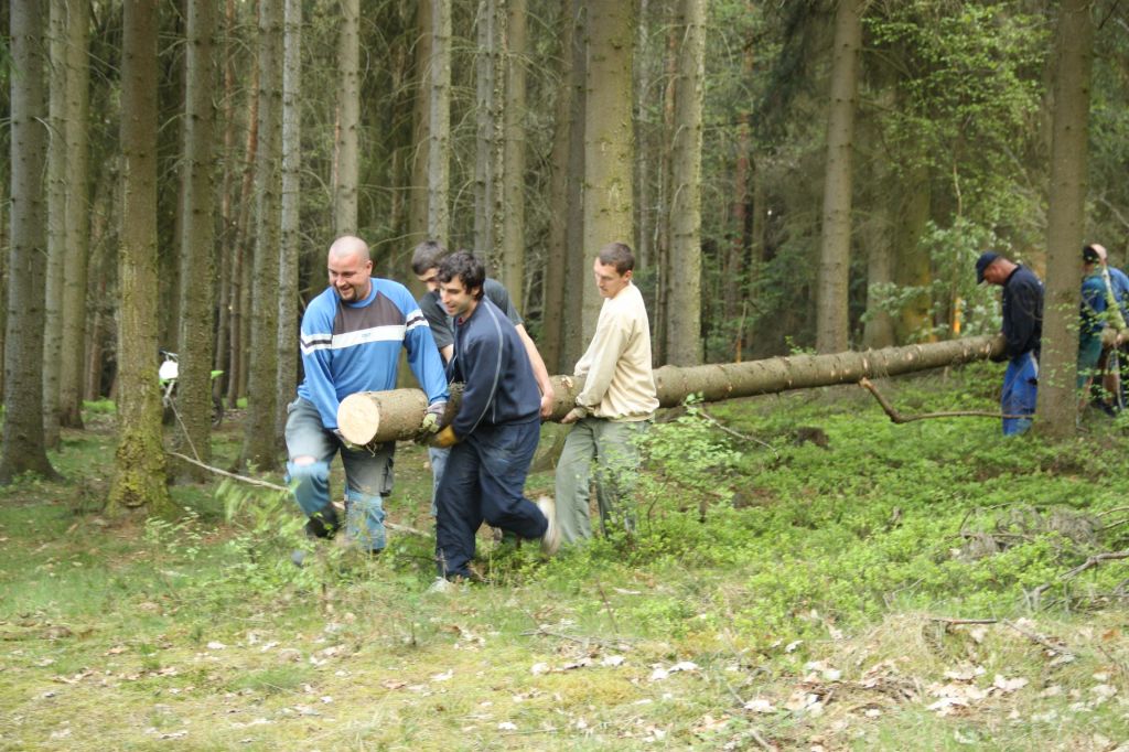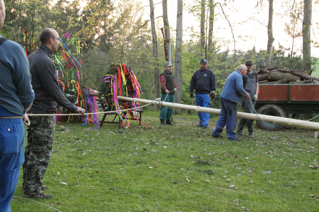 Vydařená akce ;-) Počasí se vyvedlo a zapojila se většina lhotečáků, to se cení. Po dlouhém a důkladném výběru májky, při kterém jsme prošli téměr celý les, proběhlo první a neúspěšné kácení. Májka se zlomila. Následoval výběr číslo dvě. Tentokrát už to byla ta správná volba a kácení proběhlo, jak mělo. Všichni spolupracovali, takže netrvalo dlouho a májka byla svlečená, nastrojená a už se zvedala k nebi. Za odvedenou práci jsme se odměnili ohněm a opékali buřty, však nám při práci vyhládlo ;-)
